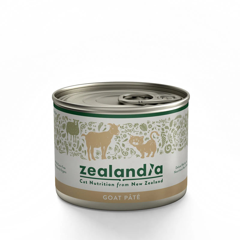 Zealandia offers a range of natural, delicious pet nutrition ethically sourced from New Zealand's rich flora and fauna. This Wild Goat recipe is hypoallergenic and free of any growth hormones or antibiotics. It is slow-cooked in a delicious broth and enriched with green lipped mussel for hip and joint support, as well as salmon oil for skin and coat health. This grain-free recipe is filled with meat and organs, your feline friend will be in love!